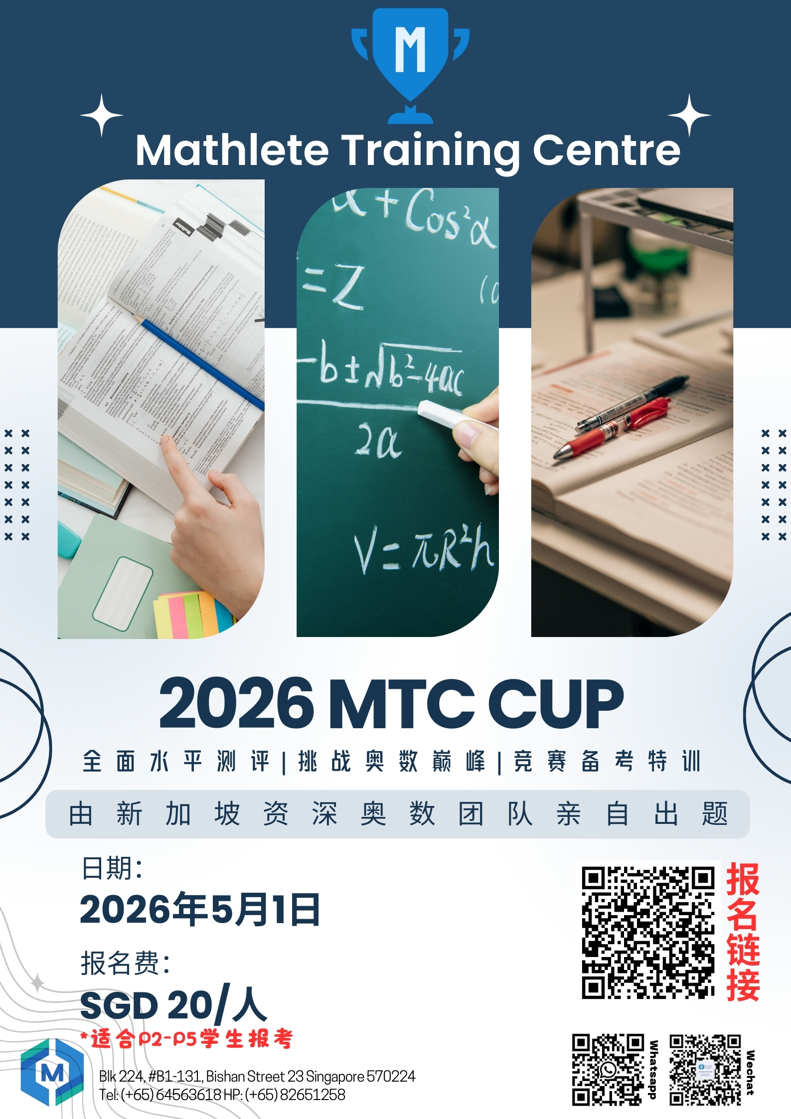 Introducing the MTC Cup, a fair platform for students to practice, gauge and hone their Math Olympiad skills. The competition serves as a litmus test for students along their Math Olympiad journey, featuring classic questions and innovative ones that challenge their critical thinking skills.